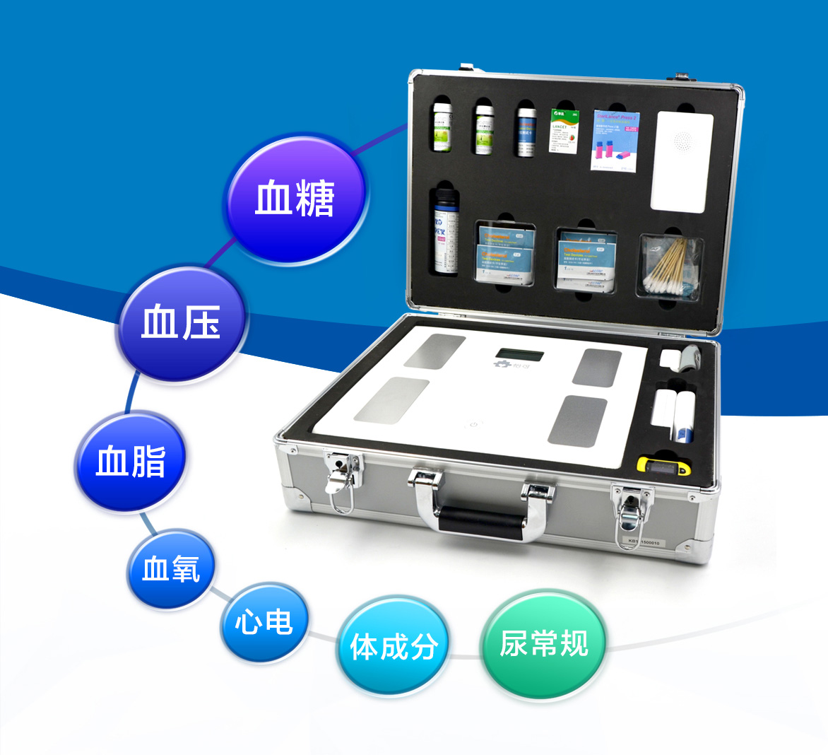 集成了血糖儀、血壓計(jì)、血脂儀、血氧儀、心電儀、體成分分析儀、尿液檢測(cè)儀等智能床旁檢測(cè)設(shè)備,可自動(dòng)采集、傳輸、整合、呈現(xiàn)身體健康指標(biāo)數(shù)據(jù),形成完整的電子健康數(shù)據(jù)記錄。用戶可實(shí)時(shí)檢測(cè)、查看多項(xiàng)身體健康指標(biāo)。